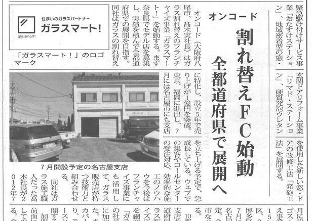 「大阪を盛り上げるベンチャー」って事で、ガラスの出張修理専門店としての社内体制やサービス業としての施工対応、LINEで5分見積りなど、弊社の取り組みを取材いただきました。